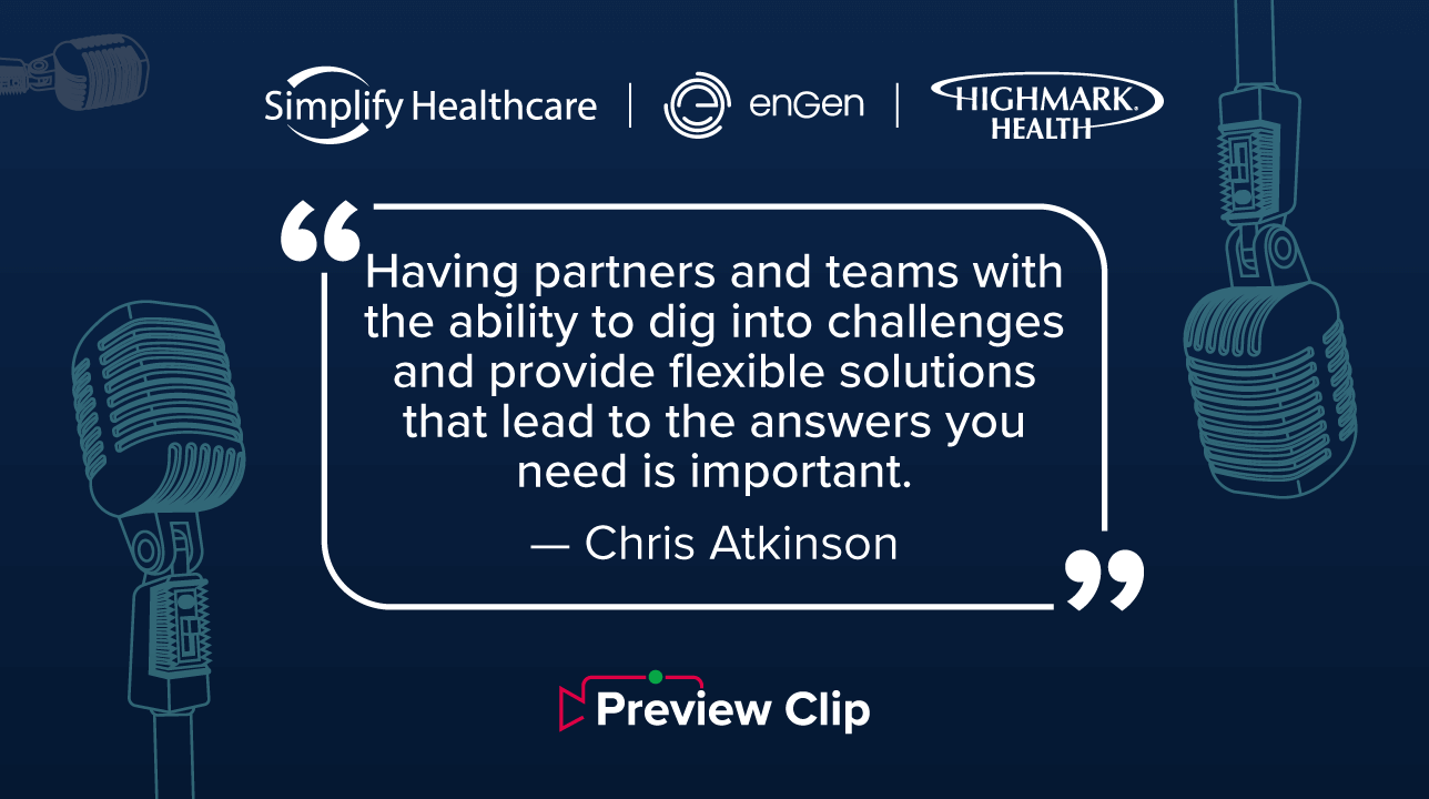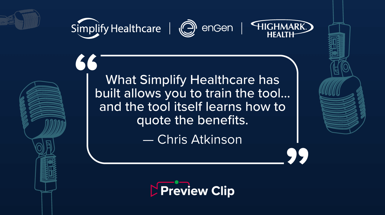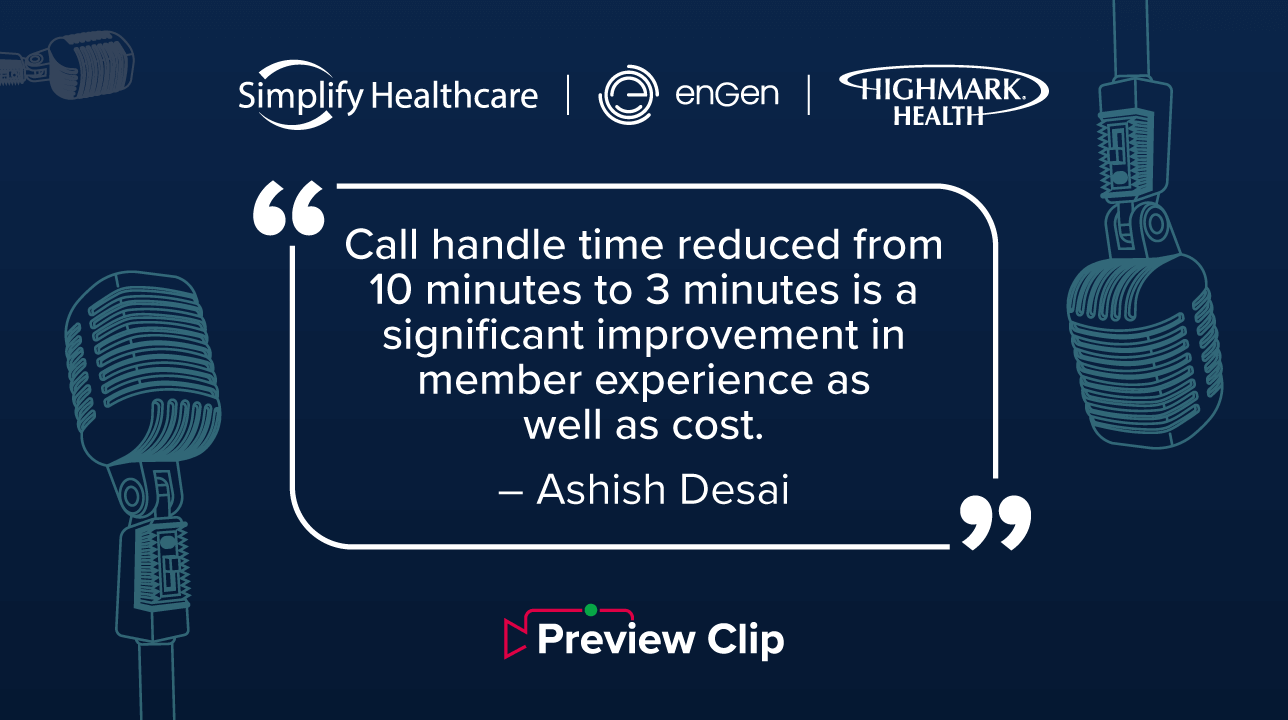In this exclusive fireside chat, leaders from enGen (a subsidiary of Highmark Health) share how they partnered with Simplify Healthcare to deploy an AI-powered solution for Highmark Health that reduced benefit inquiry call times by 50%, transformed service experiences for members and providers, and drove operational efficiencies.
